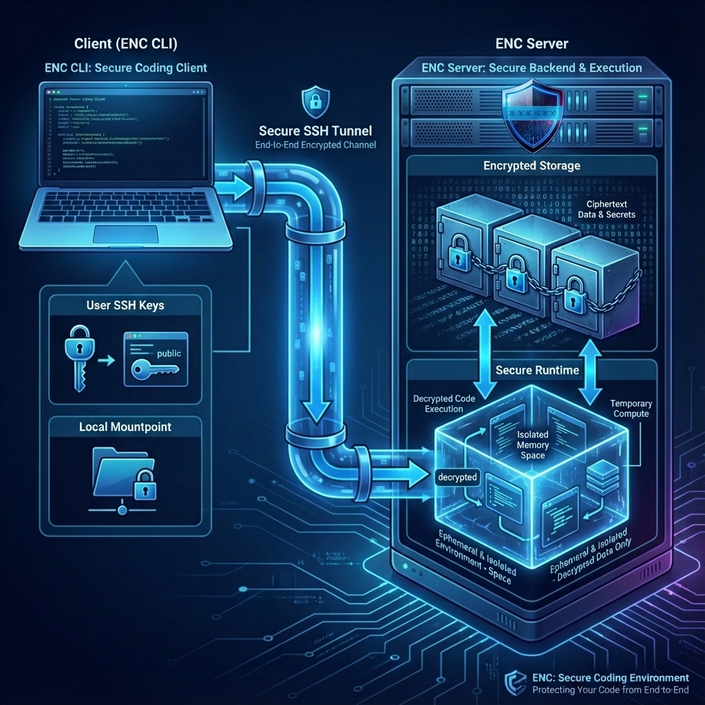 To solve this problem, we’re excited to introduce the ENC Project—a secure, encrypted execution environment that ensures only you can access and manage your projects, from anywhere.